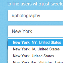 Search for a hashtag or any keyword and follow people who just tweeted about it. Try searching for people who just tweeted the hashtag '#photography' from Paris.